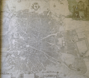En el plano de F. de Witt, el más antiguo que se conserva de la ciudad de Madrid, realizado en perspectiva caballera en el siglo XVII, se puede comprobar cómo la relación de la las construcciones de la trama urbana consolidada con el Paseo del Prado era nula. Entre las construcciones y el Paseo existían grandes espacios, que hoy en día conforman nuevas manzanas, destinados a los jardines de Palacios y cultivo de huertas.
